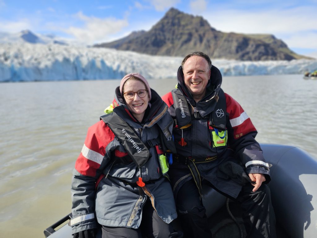 Der folgende Tag stand im Zeichen des größten Gletscher Islands, dem Vatnajökull. Wir unternahmen mehrere schöne Spaziergänge und Wanderungen zu unterschiedlichen Abbruchkanten einiger schöner Gletscherzungen und wir buchten eine Zodiactour hinein in eine Gletscherlagune. Ein tolles Erlebnis! Während der Zodiactour nahmen wir Bruchstücke von 500 Jahre altem Gletschereis mit, um nach der Zodiactour unseren Whiskeydrink damit zu kühlen. We are special! 500 Jahre altes Gletschereis mit Whiskey. Great deal. Der Vatnajökull („Wassergletscher“) ist der größte Gletscher Islands und zudem außerhalb des Polargebiets auch der größte Europas. Es handelt sich um einen Plateaugletscher im Südosten des Landes. Seine Fläche beträgt rund 8.100 km², was etwa 8 % der Fläche Islands entspricht. Übernachtet haben wir in einem praktischen Hotel am Hornafjörður, einem Fjord im Süden Islands.