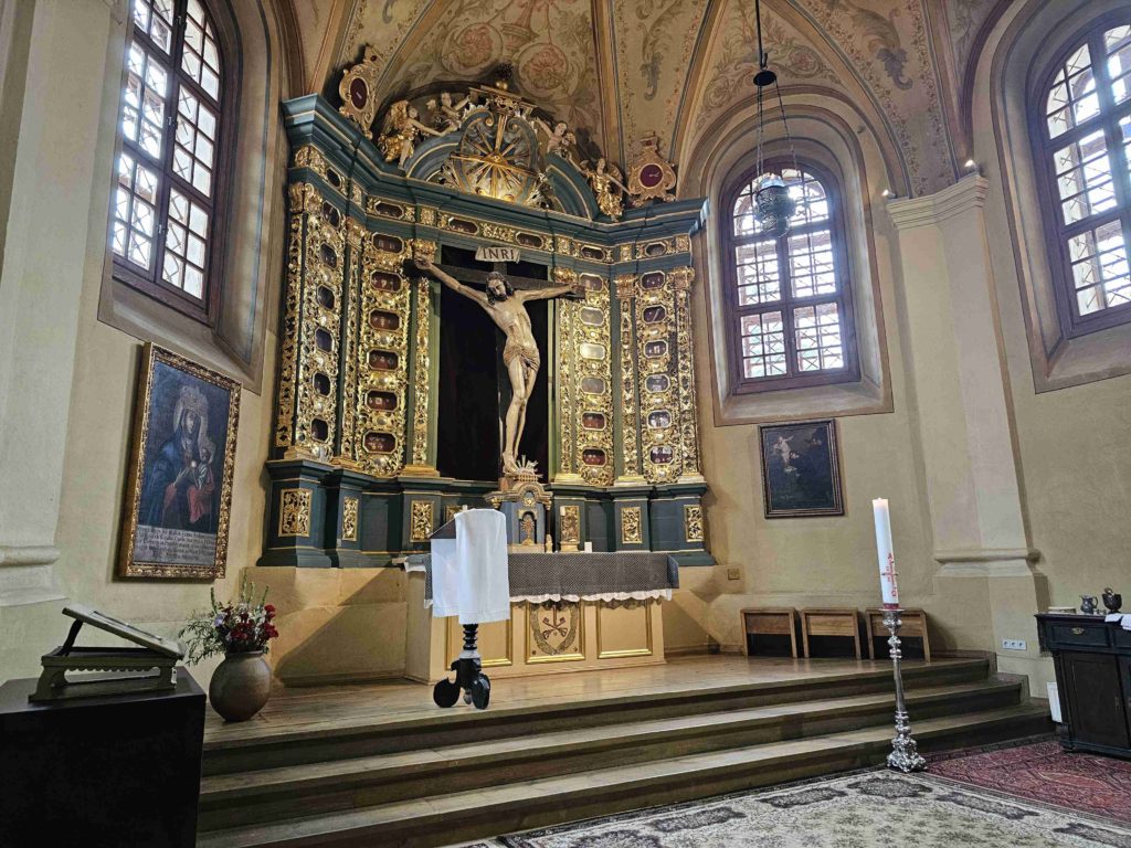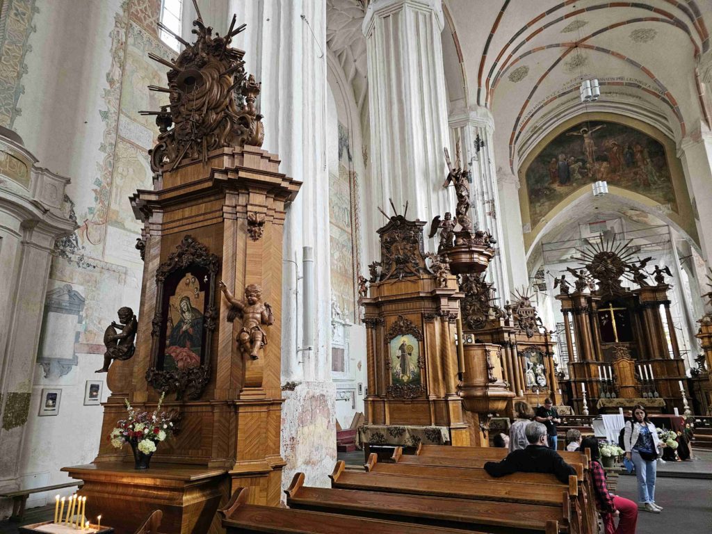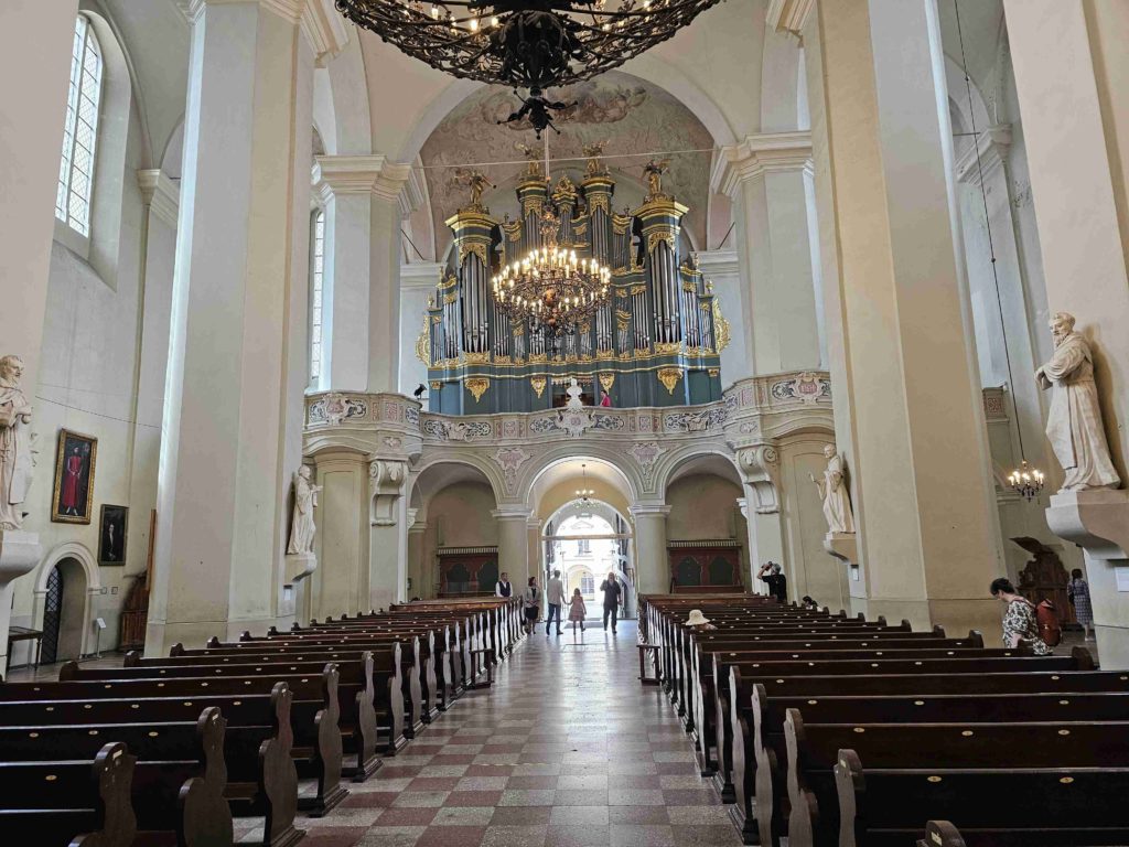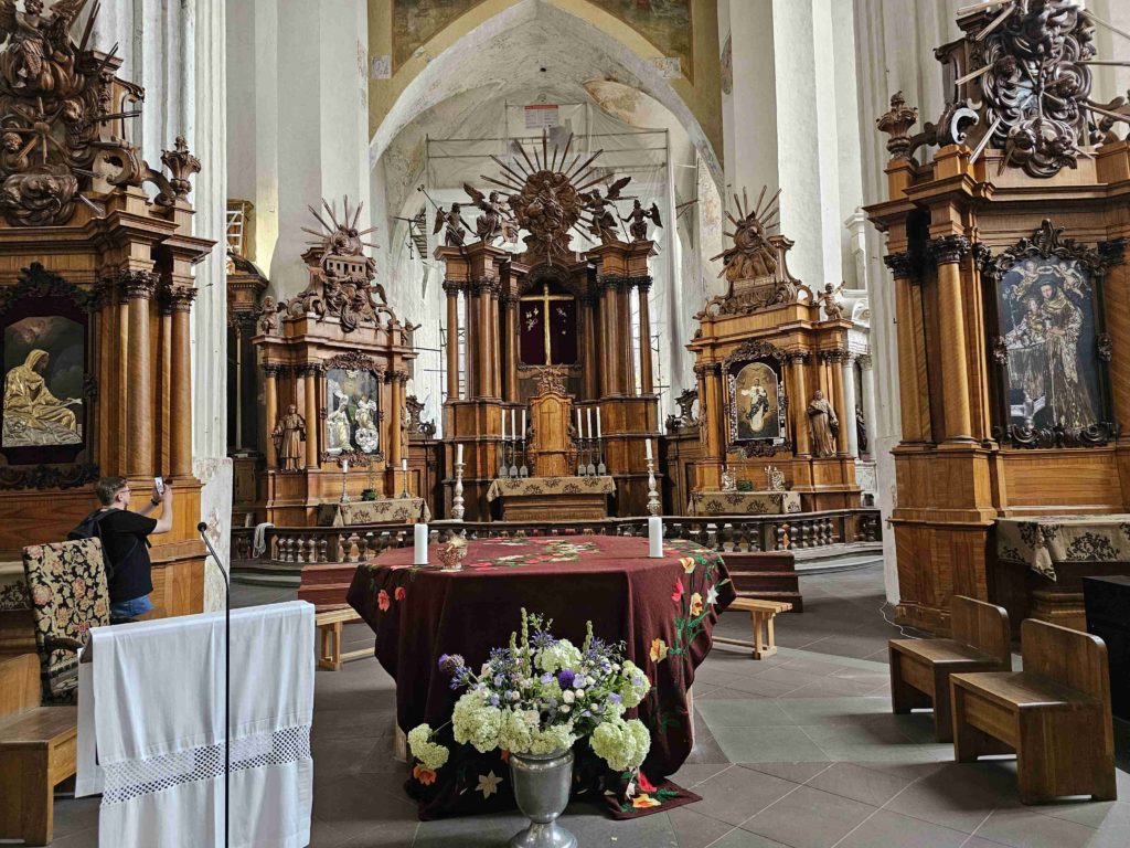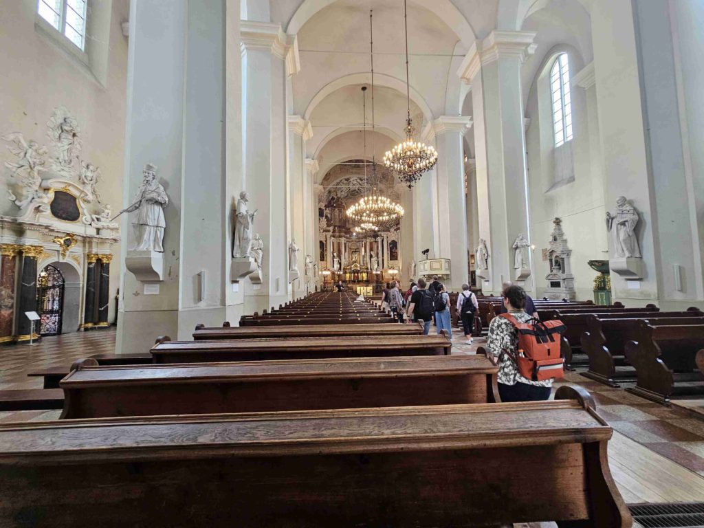 Am Abend des ersten Reisetags traf die Reisegruppe in unserem Hotel in Vilnius zum Kennenlernen bei einem gemeinsamen Abendessen zusammen. Es gab litauische Spezialitäten und einen litauischer Willkommensschnaps. 999 (Trejos Devynerios) – zu Deutsch: 3 mal 9. Es ist ein bitterer Kräuterschnaps mit Extrakten aus 27 Kräutern und Blüten. Am Morgen des zweiten Reisetags trafen wir uns zu einem geführten Stadtrundgang durch Vilnius. Vilnius ist die Hauptstadt Litauens. Mit ca. 600.000 Einwohnern ist sie die größte Stadt des Baltikums. Vilnius ist Sitz des römisch-katholischen Erzbistums Vilnius und mit der 1579 gegründeten Universität Vilnius eine der ältesten Universitätsstädte Europas. Vilnius war von Anfang an eine baltische Gründung und wurde im Gegensatz zu den Hauptstädten der baltischen Nachbarländer, Riga in Lettland und Tallinn in Estland nie vom Deutschen Orden kontrolliert. Sie entwickelte sich als Hauptstadt Litauens zum Zentrum eines ausgedehnten Großreiches, das auf dem Höhepunkt seiner Macht um 1618 als Polen-Litauen zeitweise von der Ostsee bis zum Schwarzen Meer reichte. Vilnius galt seit seiner Gründung als eine der liberalsten Städte Europas, die im Lauf ihrer Geschichte u. a. den verfolgten Juden aus Mitteleuropa und Russland Schutz bot. Als „Jerusalem des Nordens“ wurde Vilnius zu einem Zentrum der jüdischen Kultur und Aufklärung. Um 1900 stellten Litauer nur einen kleinen Teil der Bevölkerung (2 %), nach Juden (40 %), Polen (30 %) und Russen (20 %). Während des Zweiten Weltkriegs und der Nachkriegszeit verlor die Stadt die Mehrheit ihrer Bewohner: die jüdische Bevölkerung wurde fast vollständig im Holocaust vernichtet; ein Teil der Polen wurde während der ersten sowjetischen Okkupation (1940/41) nach Sibirien deportiert, die große Mehrheit der restlichen polnischen Einwohner nach dem Krieg nach Polen umgesiedelt. Zum Ausgleich wurden vor allem Litauer, aber auch Russen und Belarussen angesiedelt, wodurch sich die ethnische und soziale Struktur der Stadt völlig veränderte.
