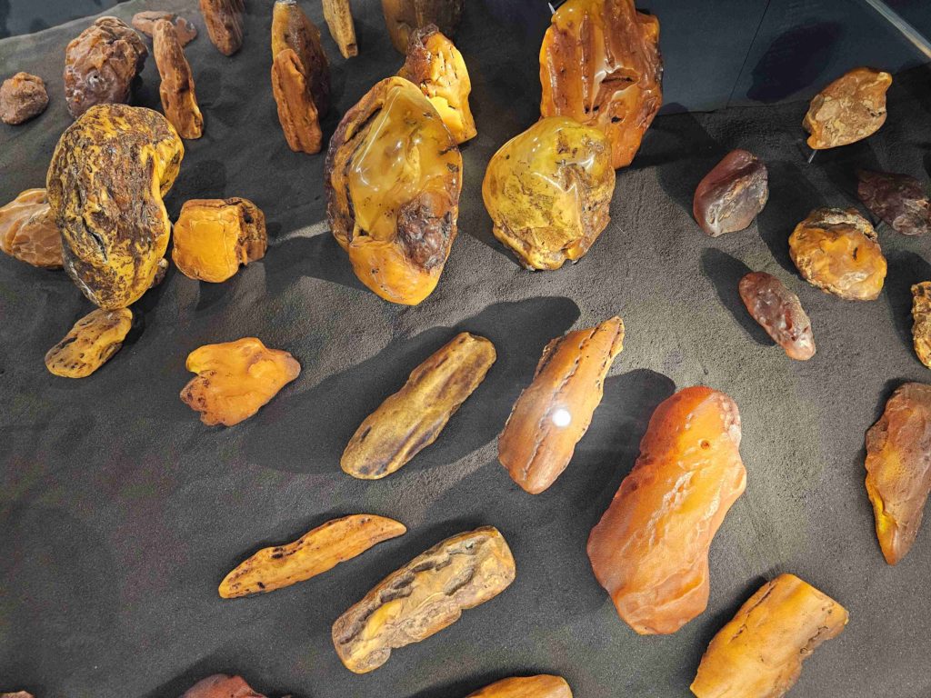 Heute nahmen wir mit unserem Bus die Fähre von Klaipeda auf die Kurische Nehrung. Wir fuhren mit unserem Bus bis Nida, besuchten dort das Anwesen von Thomas Mann, ein Bernsteinmuseum, aßen frisch geräucherten Fisch zu Mittag und machten eine Bootstour auf der Ostsee bis an die Grenze der russischen Enklave Kaliningrad (ehemals Königsberg/Ostpreußen). Die Kurische Nehrung ist eine zwischen der russischen Oblast Kaliningrad und dem südlichen Litauen vor der Ostsee liegende Nehrung. Eine Nehrung ist ein schmaler Sandstreifen, der ein Haff vom offenen Meer abtrennt. Der Name stammt aus der Ordenszeit und bezieht sich auf die seit Beginn des 15. Jahrhunderts hier ansiedelnden Kuren, eine Bevölkerungsgruppe, die aus Kurland kam. Kurland ist eine der vier historischen Landschaften von Lettland. Die Kurische Nehrung trennt das Kurische Haff von der Ostsee. Sie hebt sich etwa dreißig Kilometer nördlich von Kaliningrad allmählich vom Festland ab und erstreckt sich von dort aus etwa hundert Kilometer weit in nordöstlicher Richtung. Die mit 3,8 km breiteste Stelle befindet sich beim Bullwikscher Haken, vier Kilometer nordöstlich von Nida, dem Grenzort des litauischen Teils. Die schmalste Stelle liegt bei der Siedlung Lesnoi am südlichen Ende der Nehrung und ist nur 380 m breit. Riesige Wanderdünen begruben immer wieder Ortschaften. Erst in der zweiten Hälfte des 19. Jahrhunderts gelang es die Dünen zu bepflanzen und zu stabilisieren. Die Parnidis-Düne bei Nida ist eine der größten Dünen Europas. Im Bernsteinmuseum von Nida lernten wir alles über Bernstein. Bernstein bezeichnet einen seit Jahrtausenden bekannten und insbesondere im Ostseeraum verbreiteten klaren bis undurchsichtigen gelben oder gelbbraunen Schmuckstein aus fossilem Harz.