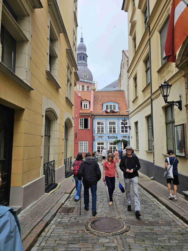 Die heutige Etappe führte uns von Litauen über die Grenze nach Lettland. Unser Etappenziel war die lettische Hauptstadt Riga. Auf dem Weg nach Riga besuchten wir als erstes das Schloss Rundale. Das Schloss Ruhental gehört zu den bedeutendsten Baudenkmälern des Barocks und des Rokoko in Lettland. Es wurde nach dem Vorbild des französischen Schlosses Versailles gestaltet. Das dreiflüglige und zweistöckige Schloss beherbergt auf fast 7000 m² 138 Zimmer und Säle. Der Schlosspark ist ebenfalls im französischen Stil angelegt. Zum Konzept von Studiosus gehören die Begegnungen, um im Gespräch mit Einheimischen über den Alltag der Bevölkerung reden zu können. So besuchten wir heute das Bauernhaus Vaidelotes. Die Bäuerin begrüßte und bewirtete uns herzlich mit selbstgemachten lokalen Speisen und Getränken. Sie erzählte von ihrem Betrieb und von der Zeit der Wende, als die Menschen im Baltikum sich aus der Umklammerung der Sowjetunion befreiten. Die Furcht erneut unter russischer Fremdherrschaft zu geraten, war hier auch latent zu spüren. Gegen Abend erreichten wir unser Hotel mitten im Stadtzentrum Riga.
