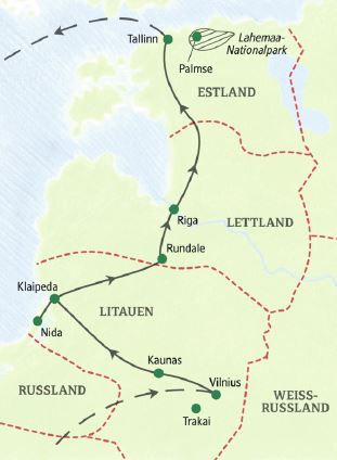 Die Anfrage meines älteren Bruders gemeinsam eine geführte Studienreise durchs Baltikum zu unternehmen nahm ich gerne auf und buchte für uns beide eine Reise mit Studiosus in einer Kleingruppe mit 14 Reiseteilnehmer. Wie ich es bei Studiosus-Reisen gewohnt bin, respektierten und achteten aller Reiseteilnehmer sich untereinander. Rasch bildeten sich kleine, informelle Interessengruppen, die gerne in der freien, programmlosen Zeit gemeinsam etwas unternahmen, Reiseerfahrungen austauschten oder ein Restaurant besuchten. Unserer Reiseleiterin Julia ist Journalistin beim Bayrischen Rundfunk. Sie wuchs in St. Petersburg (damals noch Leningrad) zu Sowjetzeiten auf. Ihre Familie hat baltische Wurzeln. Sie migrierte mit ihren Eltern in den 1980-er Jahren in die damalige Bundesrepublik. Julia leitete uns logistisch und didaktisch kompetent durch die Reise. Speziell geäußerte Wünsche und Bedürfnisse versuchte sie, soweit möglich, zu ermöglichen. Wir übernachteten in vier Hotels in den litauischen Städten Vilnius und Klaipeda, im lettischen Riga und im estnischen Tallin. Während der Rundreise hatten wir stets einen großen Omnibus zur Verfügung, der uns sehr viel Platz und Freiheit bot. Die historischen und touristischen Sehenswürdigkeiten in Vilnius, Riga und Tallins liegen konzentriert in den jeweiligen Innenstädten, so dass wir alle Städte problemlos bei geführten Stadtrundgängen erkunden konnten. Ich nahm für mich als wichtigste Erkenntnis mit, dass es das „Baltikum“ im Sinne einer nationalen und kulturellen Gemeinschaft nicht gibt. Am einfachsten verstehen wir es am Beispiel unseres kleinen Nachbarn Luxemburg im Westen. Ein Luxemburger fühlt sich als Luxemburger und nicht als Deutscher, Franzose, Belgier oder Niederländer. Am klarsten erkennt man die Unterschiede, wenn man die Sprachen Litauisch, Lettisch und Estnisch betrachtet. Besonders die estnische Sprache ist komplett unterschiedlich zu Litauisch und Lettisch. Estnisch ist mit dem Finnischen verwandt. Litauisch und lettisch sind indogermanischen Sprache. Auch wenn diese beiden Sprachen zur gleichen Sprachenfamilie gehören, versteht man sich kaum untereinander. So wie ein Deutscher meist auch Schwierigkeiten hat, Niederländisch zu verstehen. Die Balten untereinander verständigen sich mit Russisch oder Englisch. Die Balten fühlen sich als freie Europäer und Bürger der EU. Ihre Freiheit wird durch die Mitgliedschaft in der NATO geschützt. Hierbei ist sich eine große Mehrheit der baltischen Bevölkerung einig. Der starke Freiheitswille entwickelte sich in den baltischen Ländern nicht zuletzt durch die jahrhunderte lange Fremdherrschaft externer Großmächte Deutschland, Schweden, Russland und die Sowjetunion. Vor allem die jüngste Fremdherrschaft durch die Sowjetunion, die noch viele heute lebenden Balten persönlich erdulden mussten, nährt den starken Drang auch zukünftig unabhängig und frei zu bleiben. So ist die Furcht vor Fremdbestimmung aus Moskau bei der Mehrheit der Balten stark ausgeprägt. Man ist bereit für den Erhalt der Unabhängigkeit zu kämpfen und viel zu investieren, auch wenn hierfür Verlust an Wohlstand und das eigene Leben der Preis sein sollte. Wir bezeichnen als baltische Staaten, von Nord nach Süd, die drei Länder Estland, Lettland und Litauen. Sie grenzen im Nordosten Europas an die Ostsee. Die drei Staaten waren nach dem Ersten Weltkrieg beim Zerfall des Russischen Reiches entstanden, wurden aber 1940 von der Sowjetunion im Rahmen des Hitler-Stalin-Paktes völkerrechtswidrig annektiert. Im Jahr 1990 erklärten sie sich erneut für unabhängig und trugen damit zum Zerfall der Sowjetunion bei. Alle drei Länder erlangten schließlich im September 1991 ihre Eigenständigkeit zurück und wurden im Rahmen der EU-Erweiterung 2004 Mitglieder der Europäischen Union, der Eurozone, der OECD und der NATO. In den baltischen Statten leben heute zusammen ca. sechs Millionen Einwohner auf einer Fläche von 175.000 km², also ca. halb so viel Fläche wie Deutschland.