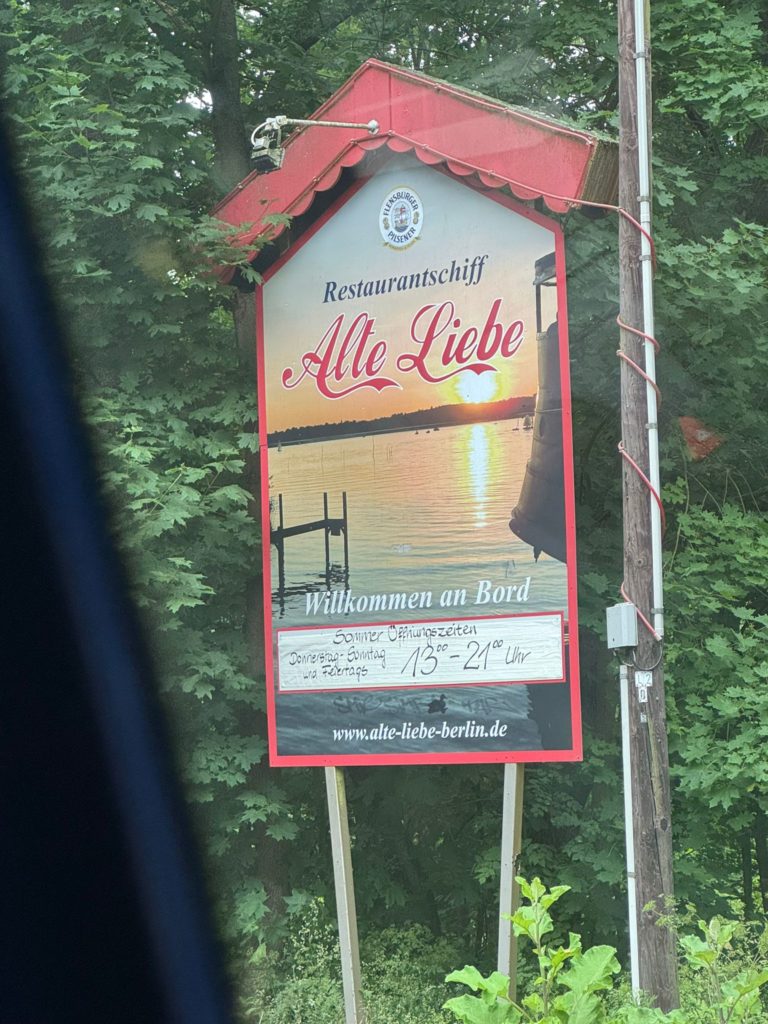 On the way to the restaurant ship „Alte Liebe“ we drove through the Grunewald. Grunewald is a district in the west of the Berlin district of Charlottenburg-Wilmersdorf. It was named after the Grunewald forest of the same name. The district is one of the wealthiest areas in Berlin.