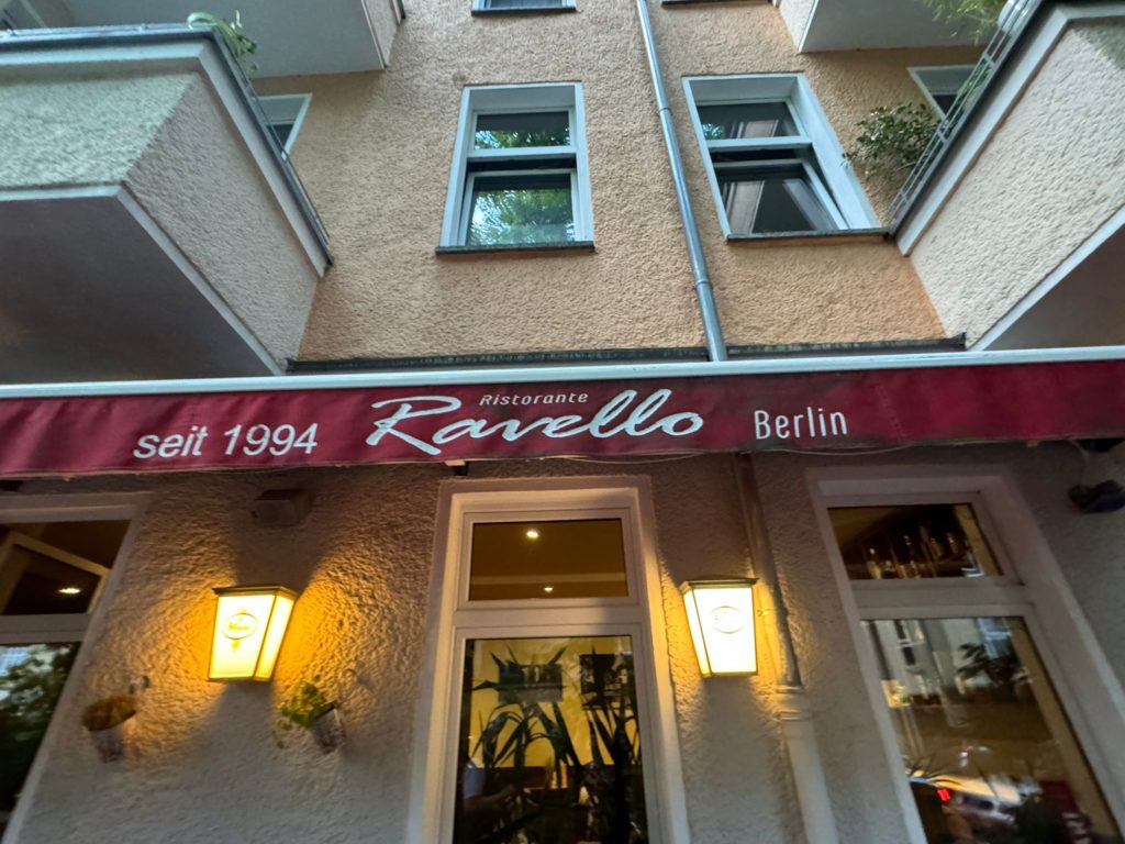 At the end of our stay in Berlin and to say goodbye to our Berlin cousin and his wife, we agreed to meet at the Italian restaurant Ravello on Jacobsohnstrasse in the immediate vicinity of our apartment.