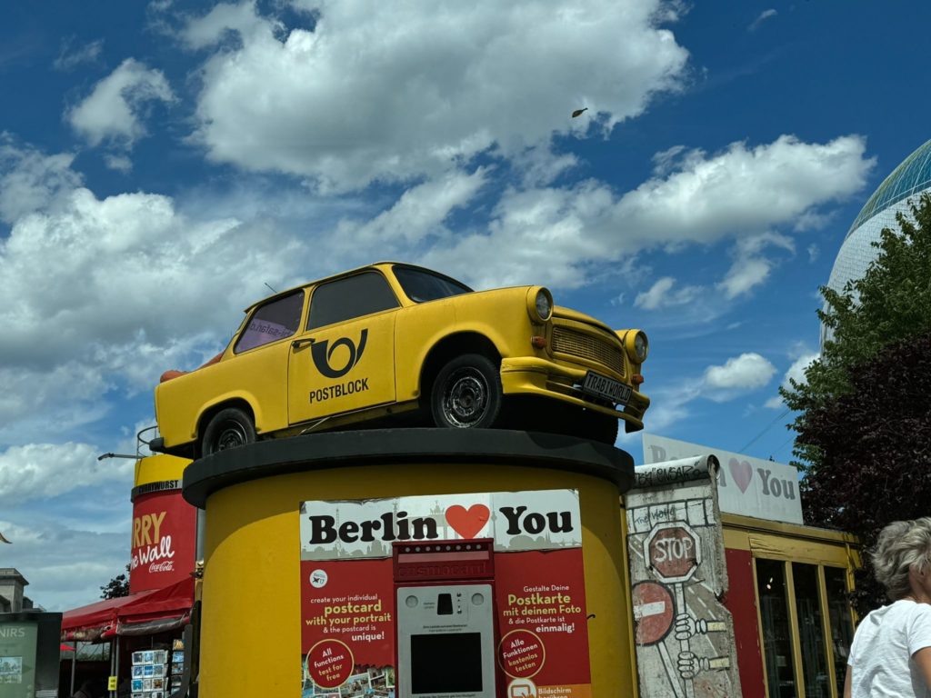 We had booked the 60-minute Berlin Compact Tour for today. The three of us male cousins then chugged through Berlin in a Trabi with a two-stroke engine and received a lot of attention.