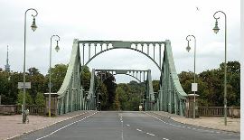 The Glienicke Bridge over the Havel between Berlin and Potsdam connects Berlin with Potsdam.