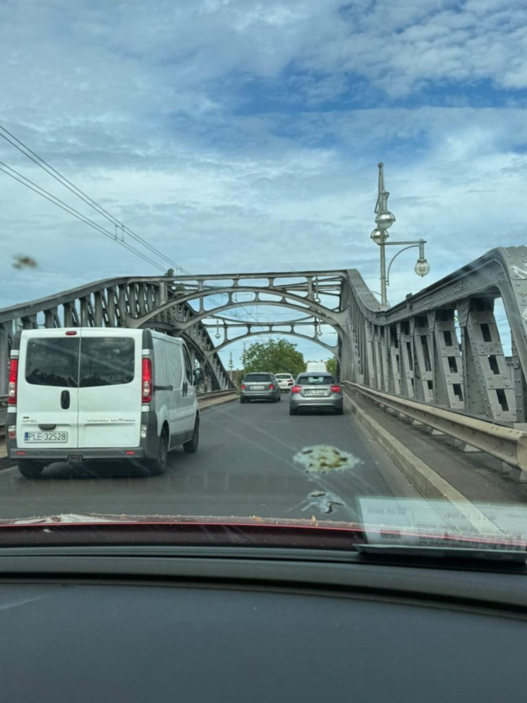 Since 2012, in the middle of the bridge, a metal band on the left and right pedestrian path has been a reminder of the old border and the abolition of division.