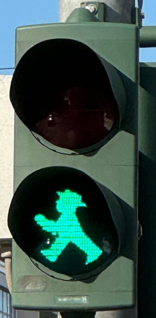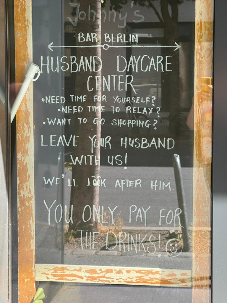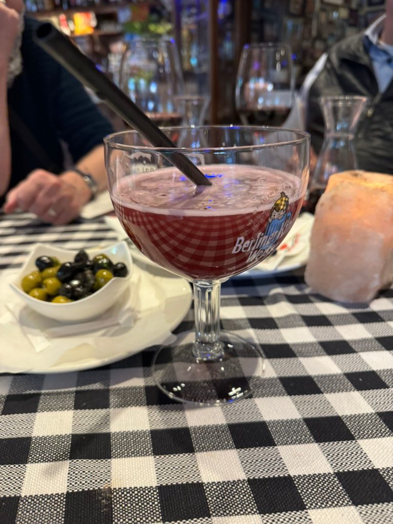 We spent the rest of the afternoon with the family and exchanged memories of our mutual visits to Germany and Canada. In front of my cousin’s front door is the restaurant with a beer garden with the clever name „Biergartenquelle“. In wonderful weather, we ate original Berlin currywurst and drank Berlin beer on tap. To get home, we only had to walk a few meters to the platform of the S-Bahn station. The way back to our apartment in East Berlin was very easy. Simply take the S-Bahn to Alexanderplatz and then our M2 tram to our apartment. Super simple and easy to do even for non-locals.
