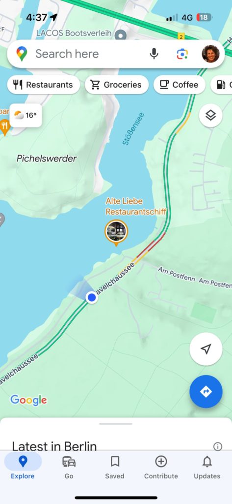 On the way to the restaurant ship „Alte Liebe“ we drove through the Grunewald. Grunewald is a district in the west of the Berlin district of Charlottenburg-Wilmersdorf. It was named after the Grunewald forest of the same name. The district is one of the wealthiest areas in Berlin.