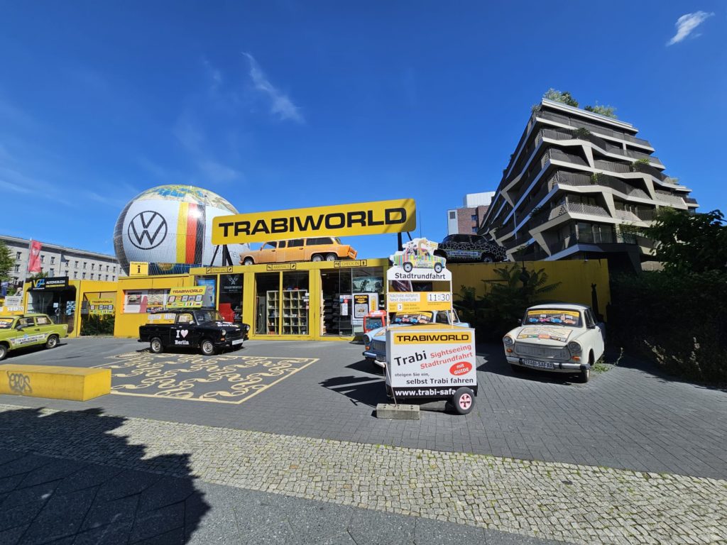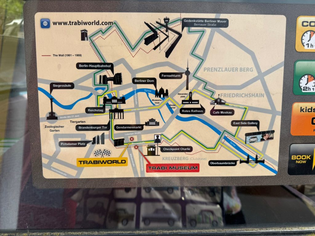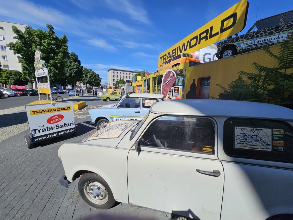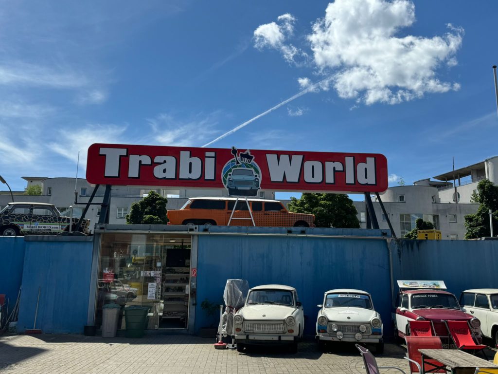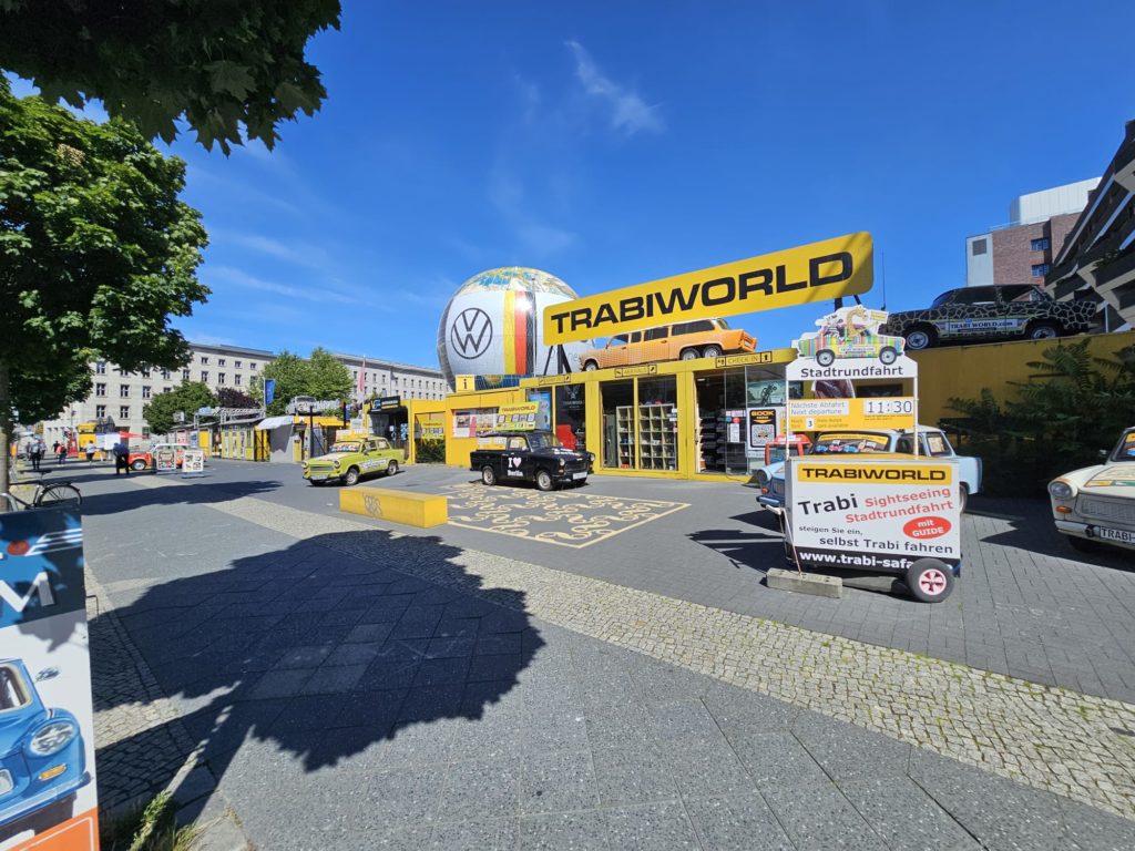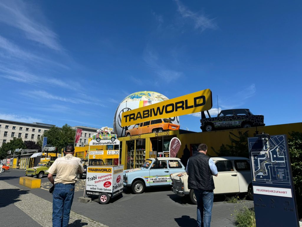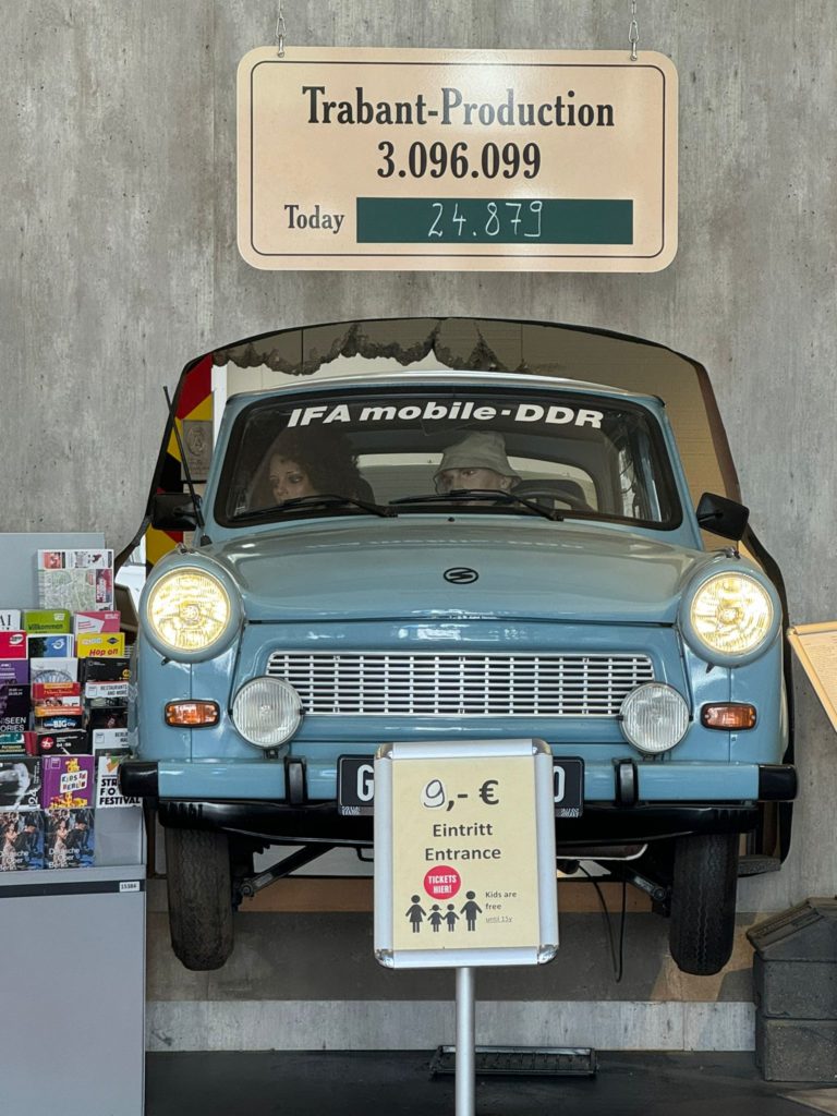 However, the disappointment was visible because the museum in Eisenach did not exhibit a Trabant. I was fully expecting to see Trabis in Eisenach. However, we had to recognize that the Autombile Welt in Eisenach only exhibits vehicles that were once built there. And unfortunately that doesn’t include the Trabant. The Trabant was manufactured in Zwickau. Now I had developed an ambition to enable us to drive a Trabi. And lo and behold, the company Trabi-Safari actually offers guided Trabi tours, very close to Checkpoint Charlie in Berlin.