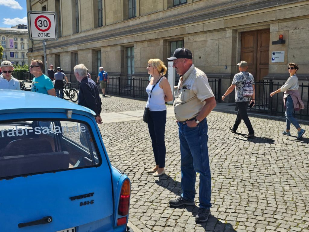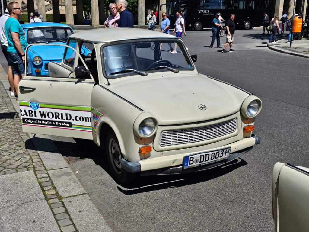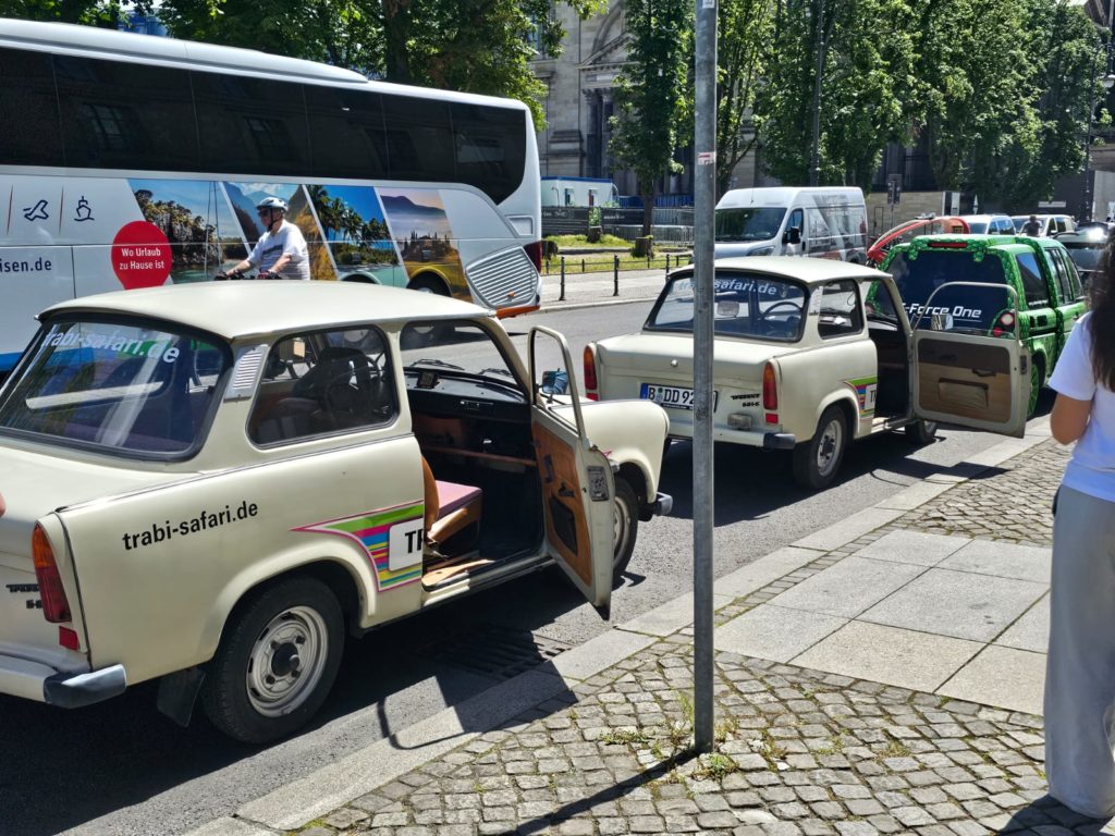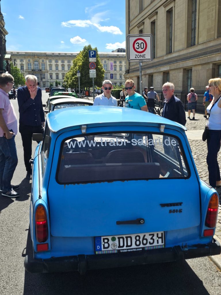 We had booked the 60-minute Berlin Compact Tour for today. The three of us male cousins then chugged through Berlin in a Trabi with a two-stroke engine and received a lot of attention.