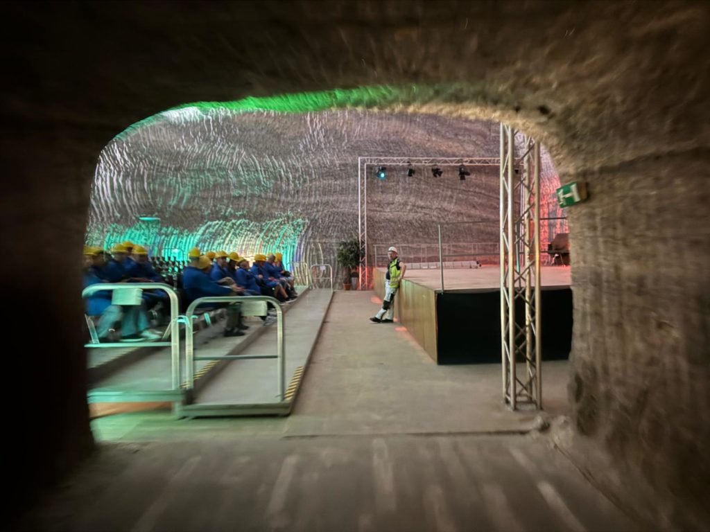 Visitors can enter the adventure mine via the Brügmanschacht. Beforehand, every visitor in the changing room is given a protective helmet and a protective gown. The conveyor cage enters the mine at a depth of 670m at around 4m/s. You are driven underground in an open truck. The mine is dry and has an average temperature of 23°C. Experienced miners explain everything worth knowing about the mine to visitors underground. Our highlight of the tour was the voluntary use of the tunnel slide. You can also celebrate your wedding in the mine’s ballroom and attend concerts that are held here regularly. Sports competitions such as the deepest underground marathon and cycling races are also held here.
