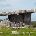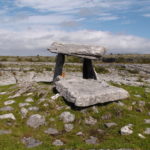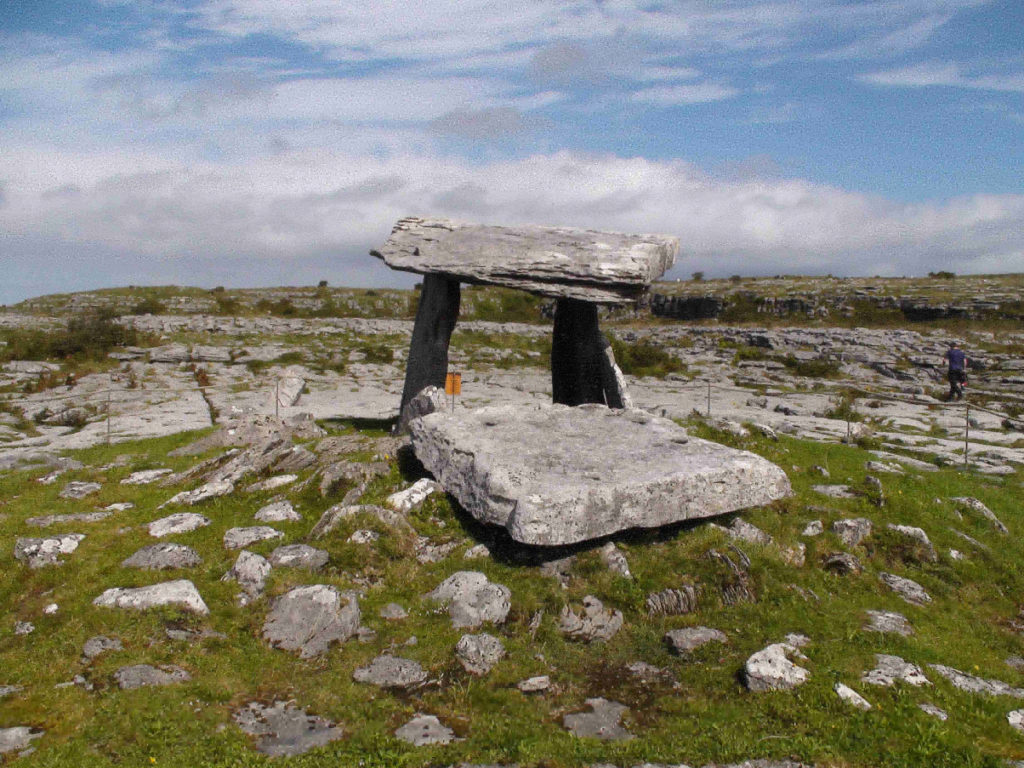 Über der eigenartigen Landschaft des Burren schwebt dieser ungewöhnlich grazile Dolmen, der wohl auf die Zeit um ca. 2.500 vor Christus zurück geht. Ausgrabungen förderten Knochen von sechzehn Erwachsenen und sechs Kindern zutage, sowie Tonscherben und Steingerät. Rätselhaft, wie in dieser Steinwüste Menschen überleben konnten.