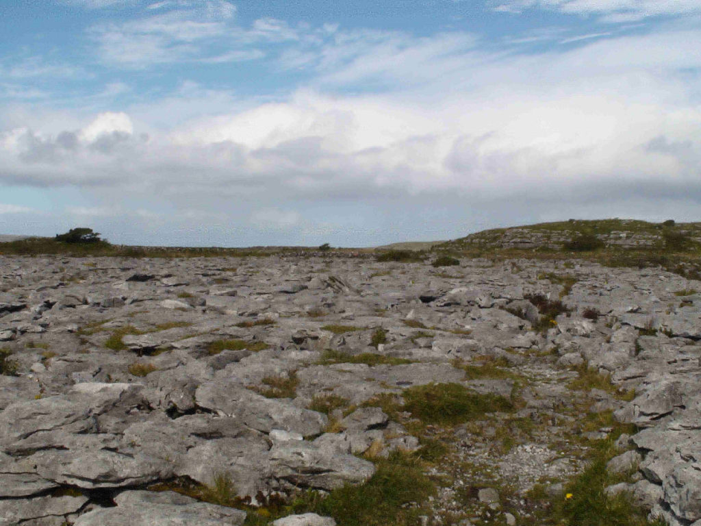 Von Limerick starteten wir zu einem ganztägigen Ausflug in die geologisch und botanisch einzigartige Karstlandschaft des Burren. Der Burren ist eine 260 Quadratkilometer große Fläche von porösem Kalkstein, die sich vor Urzeiten unter dem Meer gebildet hatte, durch Erdbewegungen an die Oberfläche gelangte und von Gletschern aufgebrochen wurde. Die Landschaft ist außergewöhnlich, kahl und karg. Die Oberfläche des Kalksteinbodens hat durch Erosion Furchen und Risse gebildet.