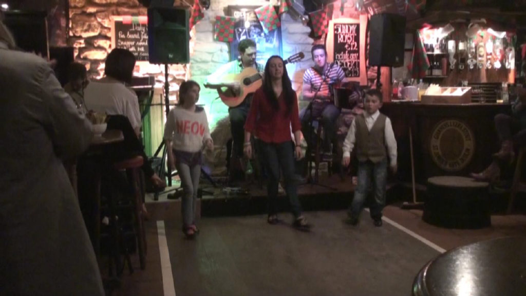 Allgegenwertig sind in ganz Irland die Pubs. Jede Ansiedlung und sollte sie nur aus drei Häusern bestehen hat sicher darunter einen Pub. Der Pub ist das irische Wohnzimmer. Iren sind gesellig. Anders als in Deutschland kann man problemlos in jede irischen Dorfkneipe gehen ohne das man als Fremder gleich skeptisch oder feindselig taxiert wird. Guiness und Livemusik gibt es überall. Hier trifft sich jeder von der Uroma bis zum Urenkel. Auch die Musik wird von allen Generationen für alle Generationen gemeinsam zelebriert. So auch der irische Steptanz wie man an den Bildern erkennt.