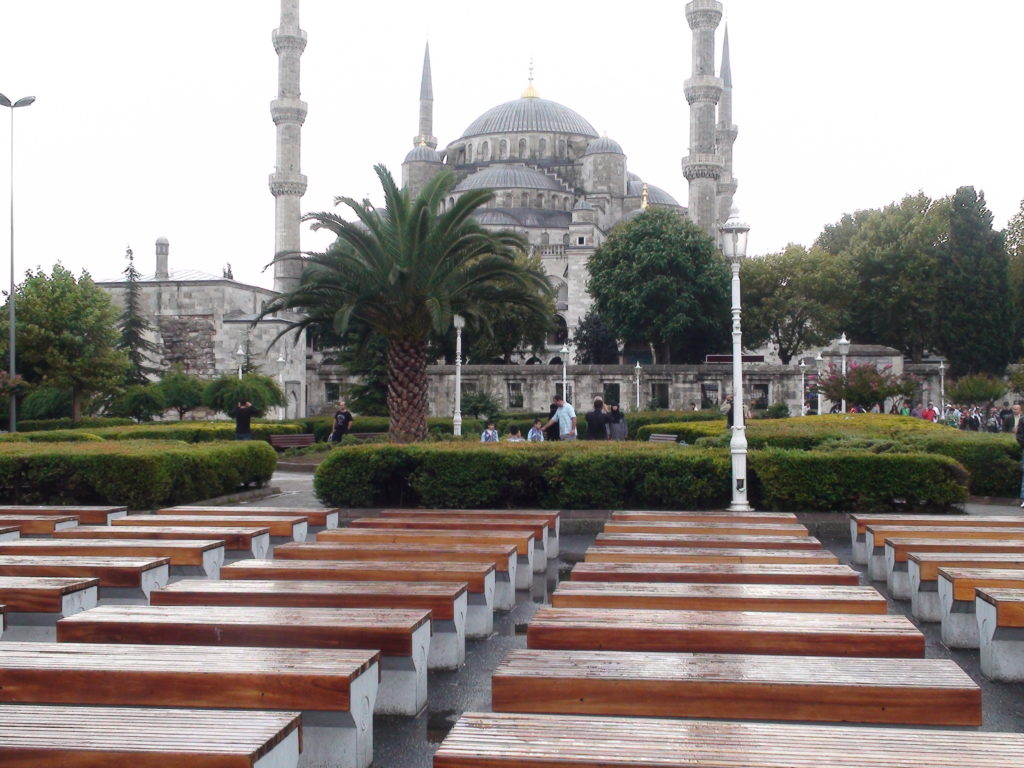 Das Stadtbild ist von Bauten der griechisch-römischen Antike, des mittelalterlichen Byzanz sowie der neuzeitlichen und modernen Türkei geprägt. Paläste gehören ebenso dazu wie zahlreiche Moscheen, Kirchen und Synagogen. Drei der berühmtesten Prachtbauten haben wir uns dann intensiver angeschaut. Beginnen wir mit dem ältesten dieser drei Prachtbauten, der Hagia Sophia.