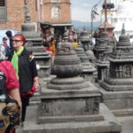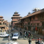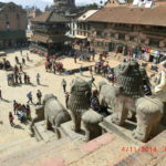 Die Temperaturen sind im Herbst dort sehr angenehm warm. Der Monsun ist dann vorrüber und man bleibt trocken. Perfekte Reisezeit um Land und Leute kennen zu lernen. Am Sonntag erkundeten wir die Altstadt Kathmandus mit seinen Palästen, Tempeln und Pagoden. Die unendlichen Holzschnitzereien an den reichlich verzierten Holzfenstern markieren den unverkennbaren Nepalistil. Am Pashupatinath durften wir an den Verbrennungszeremonien am Ufer des Bagmati teilhaben. Nachdenktlich und tief beeindruckt besuchten wir dannach die durch Studiosus unterstützte Schule in Kathmandu. Zum Mittagessen ging es dann zur Great Boudha Stupa, ein sehr beeindruckender magischer Ort. Dort konnten wir die Seele baumeln lassen und unsere Eindrücke verarbeiten. Am folgenden Tag reisten wir ins subtropische Tiefland Nepals, ins Terai. Eine abenteuerliche Reise auf dem einzigen möglichen Highway Nepals. Für die Beschreibung der Strassenverhältnisse fehlen mir schlichtweg die Worte. Jedenfalls übersteigt die Anzahl und die Größe der Schlaglöcher jegliche Vorstellungskraft. Ein schwerer Verkehrsunfall fesselte uns an einen Fleck. Es bildete sich eine 25 km Fahrzeugschlange in beide Richtungen. Wir nutzten die 5 Stunden Standzeit mit einem Spaziergang am Fluss entlang, überquerten mit Seilbahnen und mit Hängebrücken mehrfach den Trishuli und schlugen uns so die Wartezeit kreativ tod. Spät Abends erreichten wir den unser Lodge im Chitwan-Nationalpark. Beim Elefantenritt am nächsten Morgen sahen wir dann Nashörner, sogar eine Nashornmama mit Baby. Am Donnerstag 30.10. ging es dann weiter nach Westen in die Vorberge des Himalayas nach Pokhara zu unserer Nobel-Lodge am Phewasee. Bei Spaziergängen nahmen wir Kontakt mit der unbeschreiblich gastfreundlichen, einheimischen Bevölkerung auf. Außerdem genossen wir das Bergpanorama am Machupuchare und am Anapurnamassiv. Am Sonntag 02.11. hatten wir dann unseren letzten langen Fahrtag zurück gen Osten durch das Kathmandutal zum Himalayamassiv nach Dhulikel (1600m). Eine tolle Hotelanlage mit einem überwältigem Panoramablick ins Tal. Zum Schluss hiess es nocheinmal Kultur pur. Es ging in die alten Königstädte Bhaktapur und Patan. Dort gab es so viel zu sehen, dass man die Eindrücke gar nicht mehr verarbeiten konnte.