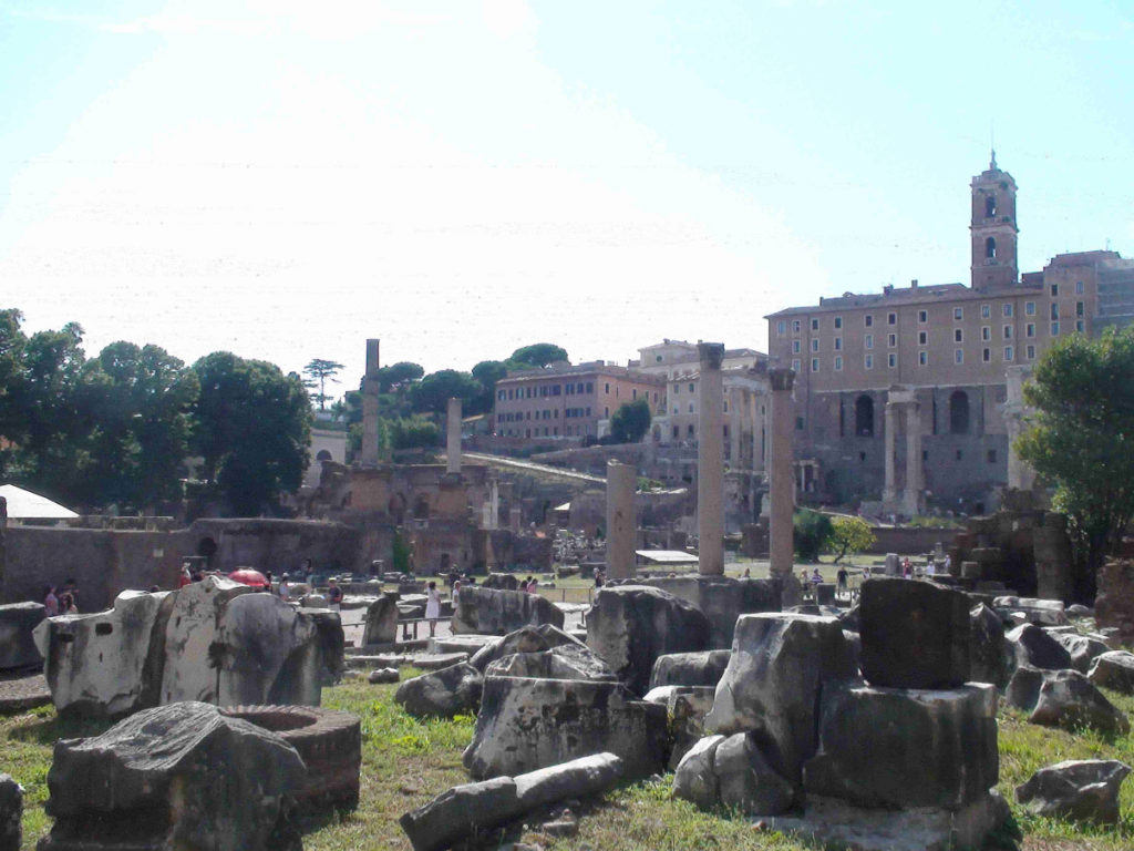 Im 1. Jahrhundert v. Chr. war Rom wohl bereits eine Millionenstadt und sowohl geographisches als auch politisches Zentrum des Römischen Reiches. Es verfügte über ein funktionierendes Frisch- und Abwassersystem, ein ausgebautes Straßennetz, Feuerwehr und Polizei. Trotzdem wurde der Ausbau Roms, der besonders unter Caesars Erbe Augustus forciert worden war, durch einen großen Brand von Rom unter Nero im Jahr 64 vorübergehend zurückgeworfen. Der Marmorboden des Senatsgebäudes ist original und ca. 2.100 Jahre alt. Auf diesem Marmorboden, auf dem wir am 28. Juli 2011 um 17:00 Uhr standen, stand einst kein geringere als Julius Cesar, bevor er hier umgebracht wurde.