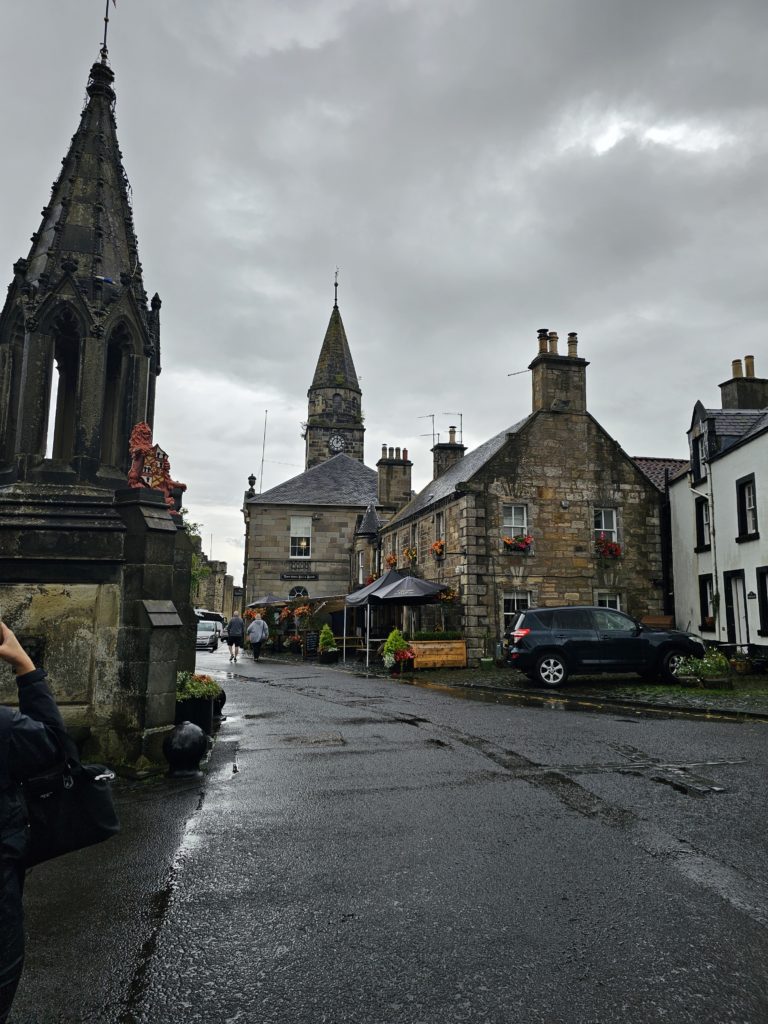 Heute besuchten wir Sehenswürdigkeiten, die die Fernsehserie „Outlander“ inspiriert haben. Wir besuchten die Städte Falkland und Culross, sowie die Schlösser von Doune, Midhope und Blackness.
