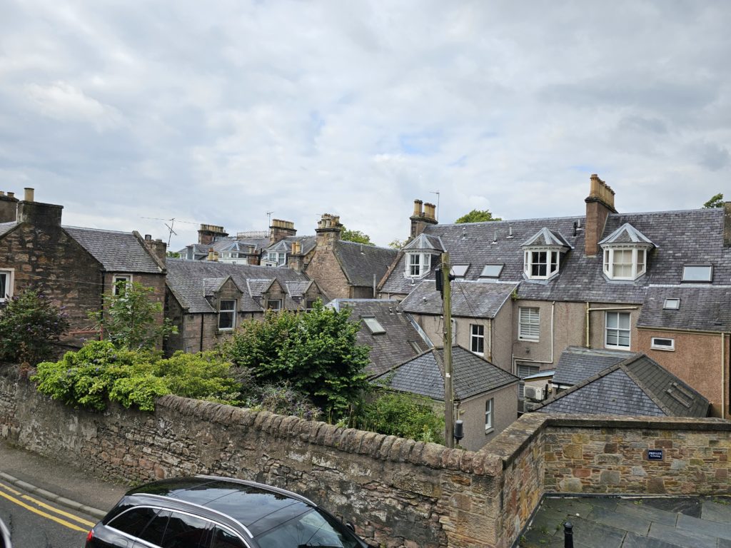 Heute besuchten wir Sehenswürdigkeiten, die die Fernsehserie „Outlander“ inspiriert haben. Wir besuchten die Städte Falkland und Culross, sowie die Schlösser von Doune, Midhope und Blackness.